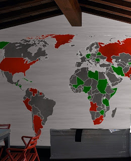 Un montón de imágenes para decorar paredes, e incluso suelos y techos, con mapas de todo tipo...Me ha encantado la idea!!!. Espero que os sirvan de inspiración.